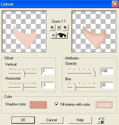 Klik på: Effects / 3D effects / Cut out - samme indstillinger og farver som før.
