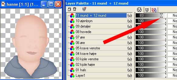 Farven på dette lag skal dæmpes. Træk skyderen på Layer paletten ned til 83: