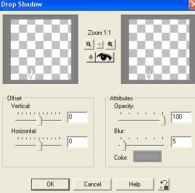 Klik på: Effects / 3D effects / Drop shadow, og brug disse indstillinger: