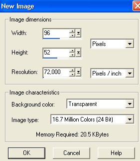 Opret et nyt image på 96 x 52 pixels.