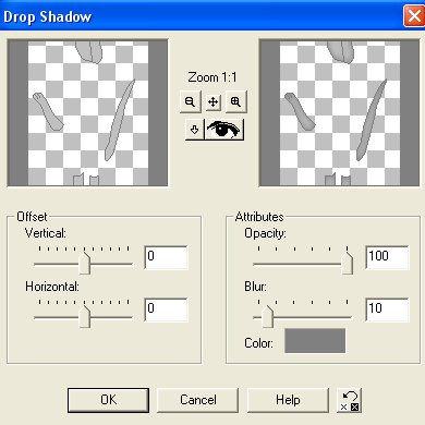 Klik på: Effects / 3D effects / Drop shadow og brug disse indstillinger: