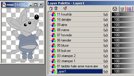 Vil man have en farvet baggrund, skal man klikke på 'Layer 1'