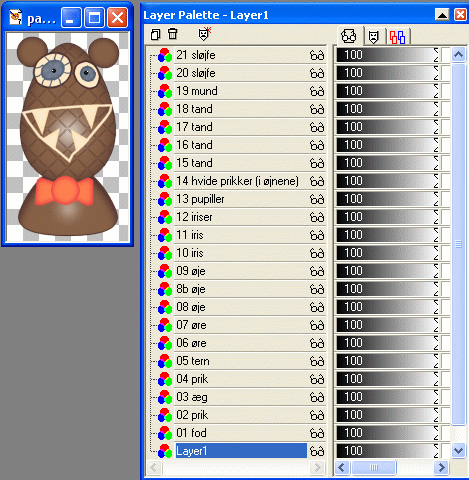 Vil man have en farvet baggrund, skal man klikke på 'Layer 1'