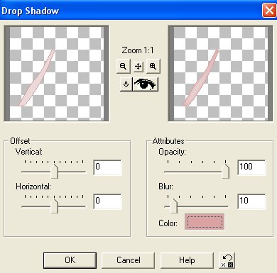 Klik på: Effects / 3D effects / Drop shadow, og brug disse indstillinger: