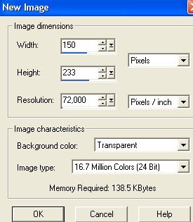 Opret et nyt image på 150 x 233 pixels.
