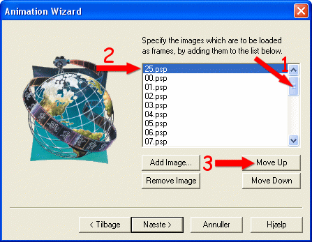 Klik på knappen Move Up, det får det sidste billede til at ligge i bunden: