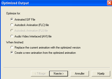 Rækken af billeder skal nu gemmes som en animation.