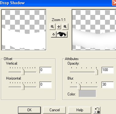 Klik på: Effects / 3D effects / Drop shadow, og brug disse indstillinger: