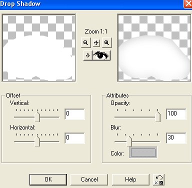 Klik på: Effects / 3D effects / Drop shadow, og brug disse indstillinger: