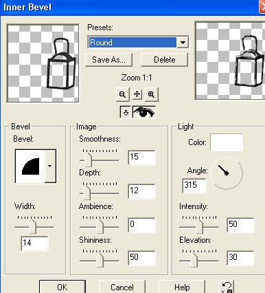 Klik på: Effects / 3D effects / Inner bevel og vælg Round